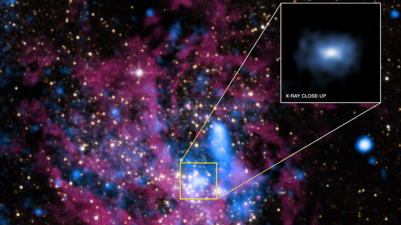 A close-up of the Sagittarius A* black hole in the Milky Way seen in X-rays only by NASA’s Chandra Observatory. The falsely blue-coloured X-rays being emitted are from hot gas captured by the black hole that is being pulled inwards. Image: NASA