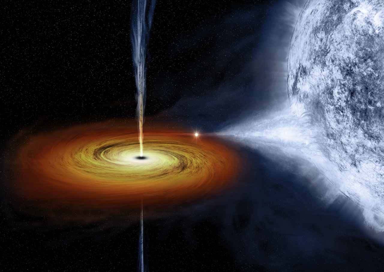 A supermassive black hole consuming matter from a nearby star [artistic illustration]. Image: NASA/JLP-Caltech