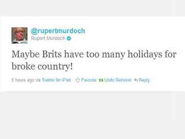 Twitter newcomer Rupert Murdoch had his first hiccups with the micro blogging site, when he commented that for a broke country, Britain had too many holidays