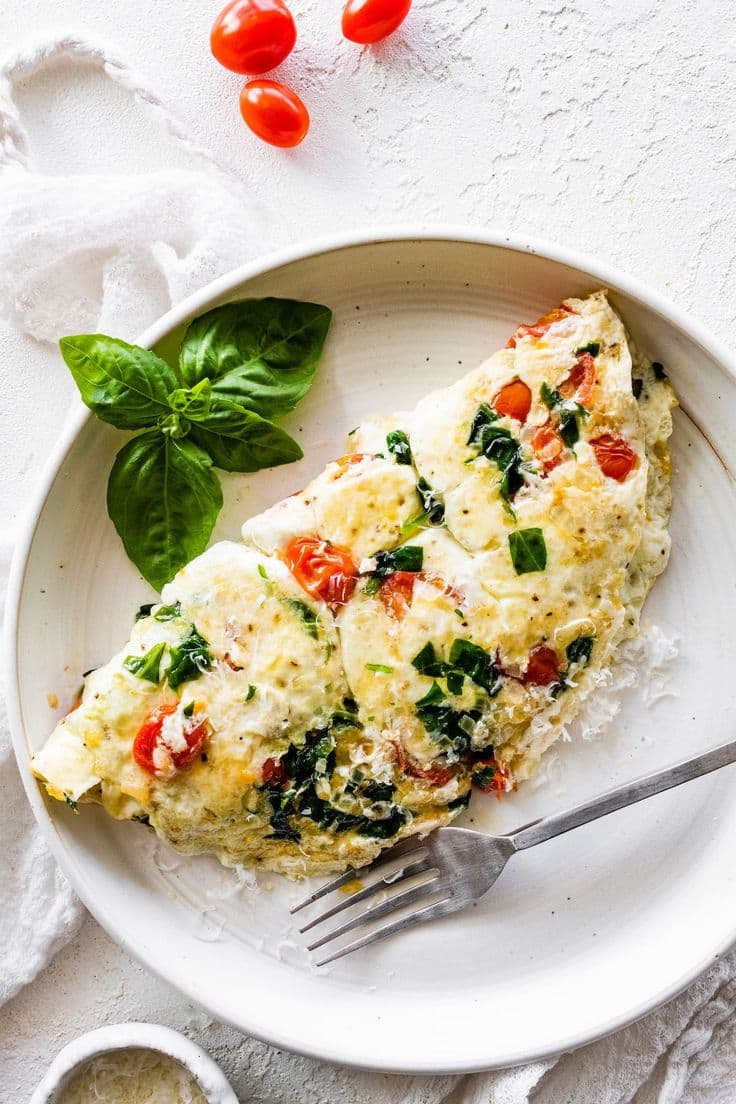 Greek omeletteFeta cheese, olives, tomatoes and spinach give this omelette a Mediterranean flair. It’s tangy, salty and full of texture and tastes great hot or at room temperature.