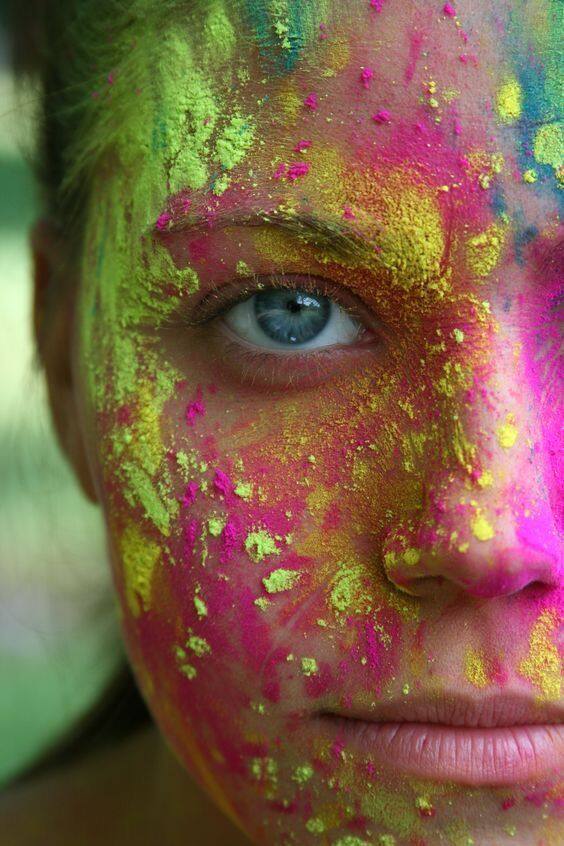 Close eyes while applying colour Shut your eyes tightly when someone applies colour to prevent direct contact with powders or liquids.