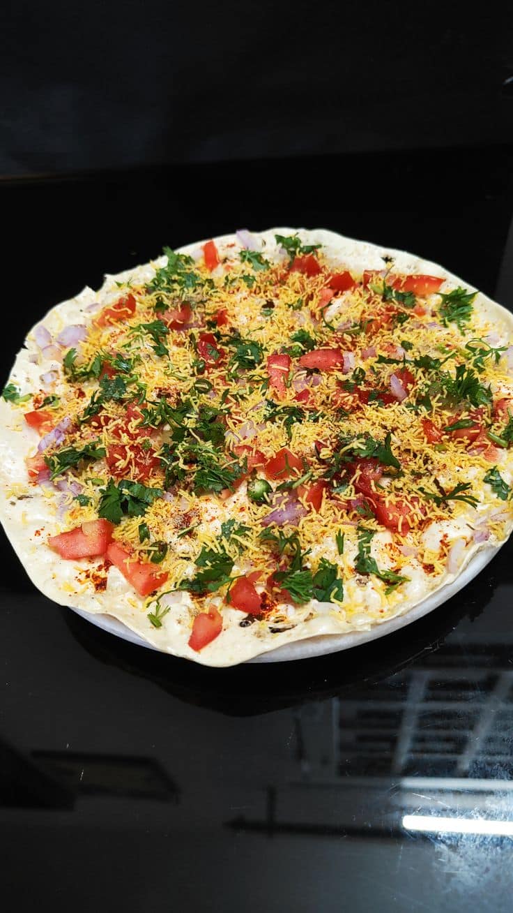 Topped with chopped onions, tomatoes, chillies and spices, masala papad is the perfect spicy starter or crispy meal side.