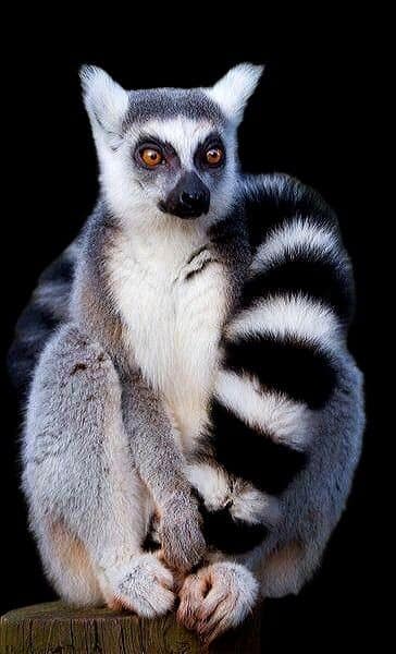 Native to Madagascar, ring-tailed lemurs use their long and striped tails for balance and communication. Their tails aren’t prehensile (used for grasping) but serve as social signals within their groups.
