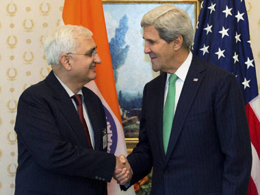 New Delhi: The United States and India could soon reschedule a visit by the US Energy Secretary that was cancelled because of a diplomatic row, New Delhi said in a statement after Foreign Minister Salman Khurshid met his counterpart John Kerry. “Both sides looked forward to the early realization of the mutually-agreed calendar of bilateral exchanges,” foreign ministry said in a statement after the two men met in Montreux on the sidelines of a conference about Syria. The statement mentioned a visit by Ernest Moniz, the US energy secretary, who postponed the trip earlier this month because of a dispute over the arrest and strip search of an Indian diplomat in New York on charges of visa fraud and lying about how much she paid her housekeeper. [caption id=“attachment_1354769” align=“alignleft” width=“380”]
