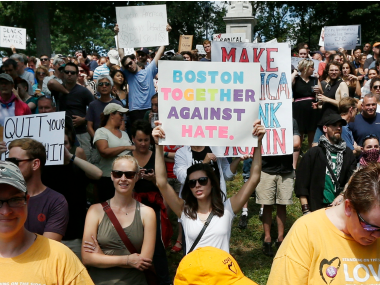 Boston: Tens of thousands of people took to the streets of Boston on Saturday to protest a “free speech” rally featuring far-right speakers a week after a woman was killed at a Virginia white-supremacist demonstration. Rally organisers had invited several far-right speakers who were confined to a small pen that police set up in the historic Boston Common park to keep the two sides separate. The city avoided a repeat of last weekend’s bloody street battles in Charlottesville, Virginia, where one woman was killed. [caption id=“attachment_3951243” align=“alignleft” width=“380”] Counterprotesters hold signs at a “Free Speech” rally by conservative activists on Boston Common, Saturday. AP[/caption] Police estimated that as many as 40,000 people packed into the streets around the nation’s oldest park. Officials had spent a week planning security for the event, mobilizing 500 police officers, including many on bikes, and placing barricades and large white dump trucks on streets along the park, aiming to deter car-based attacks like those seen in Charlottesville and Europe. The rally never numbered more than a few dozen people, and its speakers could not be heard due to the shouts of those protesting it and the wide security cordon between the two sides. It wrapped up about an hour earlier than planned. Protesters surrounded people leaving the rally, shouting “shame” and “go home” and occasionally throwing plastic water bottles. Police escorted several rally participants through the crowds, sometimes struggling against protesters who tried to stop them. Some people dressed in black with covered faces several times swarmed rally attendees, including two men wearing the “Make America Great Again” caps from President Donald Trump’s campaign. The violence in Charlottesville triggered the biggest domestic crisis yet for Trump, who provoked ire across the political spectrum for not immediately condemning white nationalists and for praising “very fine people” on both sides of the fight. On Saturday, Trump on Twitter praised the Boston protesters. “I want to applaud the many protestors in Boston who are speaking out against bigotry and hate. Our country will soon come together as one!” Trump tweeted. “Our great country has been divided for decades. Sometimes you need protest in order to heal, & we will heal, & be stronger than ever before!” ARRESTS, TENSIONS Thirty-three people were arrested, largely for scuffles in which some protesters threw rocks and bottles of urine at police dressed in riot gear, the Boston Police Department said. “There was a little bit of a confrontation,” Police Commissioner William Evans told reporters, adding that “99.9 percent of the people who were here were here for the right reasons.” Several protesters said they were unsurprised that the “free speech” event broke up early. “They heard our message loud and clear: Boston will not tolerate hate,” said Owen Toney, a 58-year-old community activist who attended the anti-racism protest. “I think they’ll think again about coming here.” US tensions over hate speech have ratcheted up sharply after the Charlottesville clashes during the latest in a series of white supremacist marches. White nationalists had converged in the Southern university city to defend a statue of Robert E Lee, who led the pro-slavery Confederacy’s army during the Civil War, which ended in 1865. A growing number of US political leaders have called for the removal of statues honoring the Confederacy, with civil rights activists charging that they promote racism. Advocates of the statues contend they are a reminder of their heritage. Organizers of Saturday’s rally in Boston denounced the white supremacist message and violence of Charlottesville and said their event would be peaceful. Republican US Senate candidate Shiva Ayyadurai spoke at the rally, surrounded by supporters holding “Black Lives Matter” signs. “We have a full spectrum of people here,” Ayyadurai said in a video of his speech posted on Twitter. “We have people from the Green Party here, we have Bernie (Sanders) supporters here, we’ve got people who believe in nationalism.” Protesters also began gathering on Saturday evening in Texas, with the Houston chapter of Black Lives Matter holding a rally to remove a “Spirit of the Confederacy” monument from a park. In Dallas, where a Lee statue was vandalized overnight, about 1,000 people gathered near City Hall to demonstrate against white supremacy. A man who appeared waving a Confederate flag was quickly surrounded by at least 100 demonstrators. “Shame on you,” they chanted. Police officers escorted the man out of the plaza a few minutes later as the crowd cheered. While Boston has a reputation as one of the nation’s most liberal cities, it also has a history of racist outbursts, most notably riots against the desegregation of schools in the 1970s. Karla Venegas, a 22-year-old who recently moved to Boston from California, said she was not surprised that the Free Speech rally petered out so quickly. “They were probably scared away by the large crowd,” Venegas said.