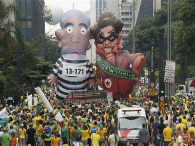 Sao Paulo: Mammoth demonstrations across Brazil are putting even more pressure on embattled President Dilma Rousseff as she heads into a tough week for her attempt to survive impeachment proceedings in Congress. According to police estimates, a total of 3 million people took to the streets in 200 cities Sunday calling on the president to resign amid widespread anger over corruption investigations and the worst recession in years. Sometime this week, lower house Speaker Eduardo Cunha, a Rousseff foe, is expected to form a commission to begin impeachment proceedings over allegations of fiscal mismanagement. He doesn’t have any say on the panel’s membership, but on Saturday members of his centrist PMDB party pledged to be more independent from Rousseff’s administration. Rousseff, who has said she won’t resign, is also under pressure from members of her own Workers’ Party, whose leaders want her mentor and predecessor as president, Luiz Inacio Lula da Silva, to intervene by taking a Cabinet post and bringing in others of his choice. Yet Silva is awaiting a decision by a Sao Paulo judge on whether he will be detained on corruption charges. Sunday’s protests add to the already-difficult position of Rousseff, who in addition to the impeachment effort is faced with a sprawling investigation by federal prosecutors into corruption at state-run oil giant Petrobras that has moved closer to her inner circle in recent weeks. In a statement after Sunday’s protests, Rousseff said, “The peaceful character of this Sunday’s demonstrations shows the maturity of a country that knows how to co-exist with different opinions and knows how to secure respect to its laws and institutions.” The biggest demonstration took place in Brazil economic capital, Sao Paulo, a bastion of simmering dissatisfaction with Rousseff and the Workers’ Party. The respected Datafolha polling agency estimated about 500,000 people took part in the demonstration, while police estimated turnout at nearly three times that number. About 1 million people joined the anti-Rousseff demonstration in Rio de Janeiro, organizers estimated. Analysts said the strong turnout could lead to the unraveling of her fragile governing coalition. “There is a situation of ungovernability,” said Francisco Fonseca, a political science professor at Pontifical Catholic University in Sao Paulo. “The president has few cards.” [caption id=“attachment_2673226” align=“alignleft” width=“380”]  Demonstrators parade large inflatable dolls depicting Brazil’s former President Luiz Inacio Lula da Silva in prison garb and current President Dilma Rousseff dressed as a thief, with a presidential sash that reads “Impeachment,” in Sao Paulo, Brazil, Sunday, March 13, 2016. AP[/caption] Fonseca added, though, that the protests showed a “generalized discontent with the political system” without necessarily shoring up any particular opposition party or politician. Crowds in the yellow and green hues of the Brazilian flag brandished signs reading “Workers’ Party out.” But demonstrators across Brazil stressed that their anger extended well beyond Rousseff and her party, saying the “Car Wash” investigation into corruption at Petrobras has compromised the entire political class. “Of course I want to see Rousseff booted out,” said Maria de Lima Pimenta, a retired schoolteacher who was at the anti-Rousseff march along Rio’s Copacabana Beach. “But then the problem becomes, who will replace her? They’re all crooks.” Protest organizers also stressed that the movement isn’t linked to any opposition political party, and signs endorsing parties were largely absent from the demonstrations. Several top politicians did turn out, including Aecio Neves, the opposition politician who narrowly lost to Rousseff in the 2013 presidential run-off election, and Sao Paulo state Gov. Geraldo Alckmin. But both were booed, and like other politicians who ventured out to the demonstrations, they beat a rapid retreat. The uncontested star of the protests was Sergio Moro, the federal judge in charge of the Petrobras case. While demonstrators denounced politicians of all stripes who have been implicated in the scandal, many brandished signs thanking Moro. The Petrobras scandal has ensnarled key figures from Rousseff’s party, including Silva, as well as members of opposition parties. Political tensions in Brazil have spiked since earlier this month when Silva was briefly detained by police for questioning as part of the Petrobras probe. Silva’s supporters and detractors scuffled in front of his apartment in the Sao Paulo area. On Wednesday, the tension rose again when Silva was hit with money-laundering charges in a separate case. Rousseff said at a Friday news conference that she would not quit, saying it was objectionable to demand the resignation of an elected president without concrete evidence the leader had violated the constitution. “If there is no reason to do so, I will not step down,” she said, calling on journalists at the event in Brasilia to “at least attest that I don’t look like someone who is going to step down. AP