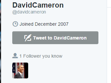 This lapse in their relationship was revealed with the help of online tool DoesFollow, which analyses who follows who on Twitter. David Cameron follows just 382 carefully-picked people, and Barack Obama is one of them.