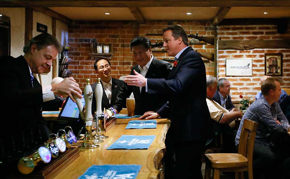 Chinese President Xi Jinping headed for a traditional British pub on Thursday, during his state visit, indulging in a beer and a portion of traditional fish and chips with Prime Minister David Cameron. AFP[/caption] [caption id=“attachment_2479584” align=“alignleft” width=“940”]