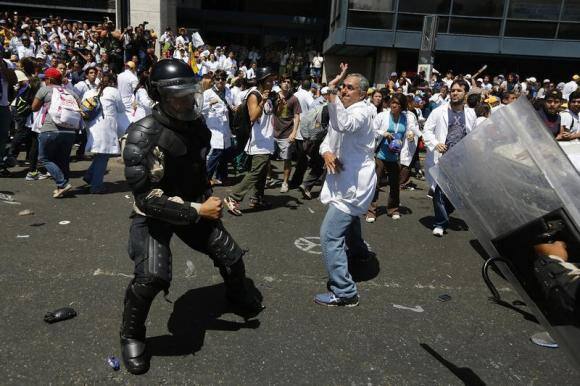 Pro- and anti-government medical personnel held rival rallies in Caracas on Monday.