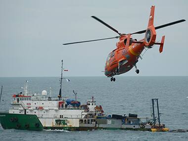 Pangkalan Bun, Indonesia: Strong currents and blinding silt thwarted an attempt by divers to find AirAsia Flight 8501’s black boxes on Thursday, which they hope are still located in the recently discovered tail of the plane. The flight data and cockpit voice recorders, which are crucial to helping determine what caused the jet to go down with 162 people aboard on 28 December, are located in the rear of the aircraft. [caption id=“attachment_2036671” align=“alignleft” width=“380”]  A national search and rescue helicopter flies over Indonesia’s MGS Geosurvey ship where the team found the tail of AirAsia Flight 8501 on the Java Sea, Indonesia. AP[/caption] A day after an unmanned underwater vehicle spotted the plane’s tail, lying upside down and partially buried in the sea floor, divers were unable to make it past choppy seas and 1-meter (3-foot) visibility, said National Search and Rescue chief Henry Bambang Soelistyo. He said expert teams from Indonesia and France were looking at other options, including a crane to lift the tail. Ping-emitting beacons in the black boxes still have about 20 days before their batteries go dead, but high waves had prevented the deployment of ping locators, which are dragged by ships. A total of six ships with ping locators were in the search area in the Java Sea, said Nurcahyo Utomo, an investigator of the National Commission for Transportation Safety. He said that based on pictures taken by the divers, he believed that the black boxes were still attached to their original location. “Once detected, we will try to find and lift up the black boxes as soon as possible,” he said. The tail wreckage, identified by the plane’s registration number and part of the AirAsia logo, was located Wednesday about 9 kilometers (6 miles) from where the Airbus A320 carrying 162 passengers and crew lost contact with the control tower on Dec. 28. The plane was nearly halfway between the Indonesian city of Surabaya and Singapore. Tony Fernandes, AirAsia’s chief executive officer, said that the airline’s priority was still is to recover all the bodies “to ease the pain of our families.” Another body was retrieved from the sea Thursday, bringing to 41 the number of victims recovered so far. Officials are hopeful many of the 121 bodies still unaccounted for will be found inside the fuselage, which is thought to be lying near the tail. The carrier, meanwhile, said families of those killed would be compensated in accordance with Indonesian laws. Each will receive $100,000 (1.25 billion rupiah), Sunu Widyatmoko, president of AirAsia Indonesia, told reporters in Surabaya. Bad weather is believed to be a contributing factor to the crash. Just before losing contact, the pilot told air traffic control he was approaching threatening clouds, but was denied permission to climb to a higher altitude because of heavy air traffic. No distress signal was issued. Associated Press