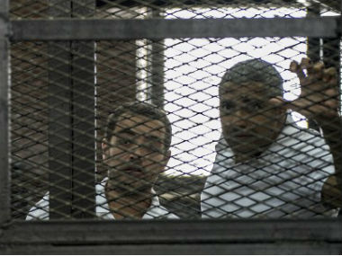 Egyptian-Canadian Mohamed Fadel Fahmy (R) and Egyptian Baher Mohamed (L), listen to the verdict inside the defendants cage during their trial for allegedly supporting the Muslim Brotherhood. AFP[/caption] The three, all employees of the Qatari-owned Al-Jazeera English broadcaster, were arrested in December 2013 and tried for allegedly supporting the blacklisted Muslim Brotherhood in their coverage. The trial came against the backdrop of a cold war between Egypt and Qatar, which supported the Islamist movement of president Mohamed Morsi, whom Sisi deposed in July 2013. The three were sentenced to seven years in prison, and the court handed Mohamed an additional three years because police who searched his home found a spent bullet casing he had picked up at a protest. A court in January ordered a retrial for the three, without setting a date, but Mohamed is set to stand alone in the dock. Seeking new nationality “Their deportation means in effect their innocence,” the 32-year-old producer’s wife said of Greste and Fahmy. “Why should my husband remain in prison?” His only options are an acquittal or a presidential pardon, which Sisi’s office has said could only come after the retrial, his lawyer Mostafa Nagy told AFP. Rashid, who with Mohamed has three children, one a boy born while his father was in jail, said she fears that interest in his case will fade once Fahmy is also deported. “I am seriously working on getting him another nationality,” she said, watching her three boys play in the garden of their Cairo suburb villa. Greste’s release was welcomed by the Western governments that pushed for his release and Al-Jazeera, which continues to insist all its reporters be freed. In Egypt, however, where anti-Qatar and Islamist sentiment runs high, Mohamed is scarcely on the radar. “The Egyptian media doesn’t mention him and is unconcerned about his fate,” Rashid said. Media advocacy groups say at least 10 journalists are imprisoned in Egypt, where reporters increasingly censor themselves for fear of angering the government or being tainted as Islamists. “Baher’s crisis is part of the suffering of Egyptian journalists in general,” said his father Mohamed Hazem. In her last visit to Mohamed in prison, he flatly turned down the idea of obtaining another citizenship, Rashed said. “I did nothing wrong to have to drop my citizenship,” she quoted him as saying. But she remains defiant: “I’m looking for another nationality for him and my children to protect their rights in the future, to find a foreign embassy to defend us in courts.” AFP