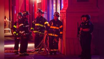 Firefighters gather as heavily armed police block the area while they search for an explosive device on West 27th street and 7th Avenue in Manhattan, New York. An explosion in a crowded Chelsea neighborhood in Manhattan on Saturday night left more than two dozen people injured, and authorities called the blast an "intentional act," but said there was no terrorist connection. New York Mayor Bill de Blasio also said a second site on 27th Street was being investigated. AP
