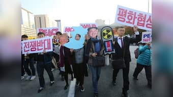 Seoul: Hundreds of South Koreans protested on Sunday against an upcoming visit by Donald Trump and called for peace as the US President begins an Asian tour dominated by North Korea’s nuclear programme. Trump, who arrived in Tokyo, is set to visit the South from Tuesday to Wednesday as part of his first Asian trip as head of state that also includes Vietnam, China and the Philippines. He is scheduled to hold a summit with President Moon Jae-In and visit a US military base, with all eyes on his message to the North and its leader Kim Jong-Un. Tensions flared after Pyongyang staged a sixth atomic test in September and test-launched multiple missiles capable of reaching the US mainland, while Trump and Kim have traded colourful personal attacks. [caption id=“attachment_4194205” align=“alignleft” width=“380”]