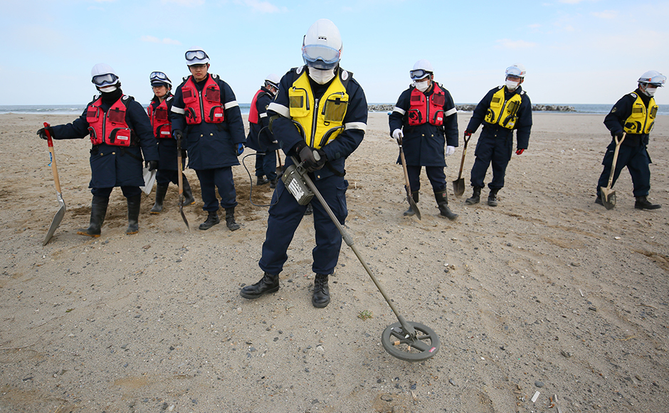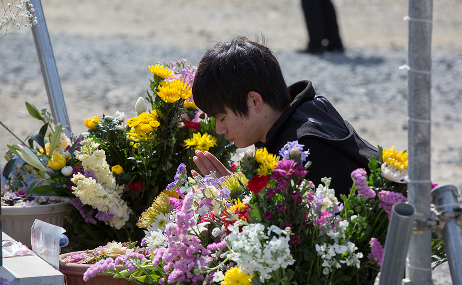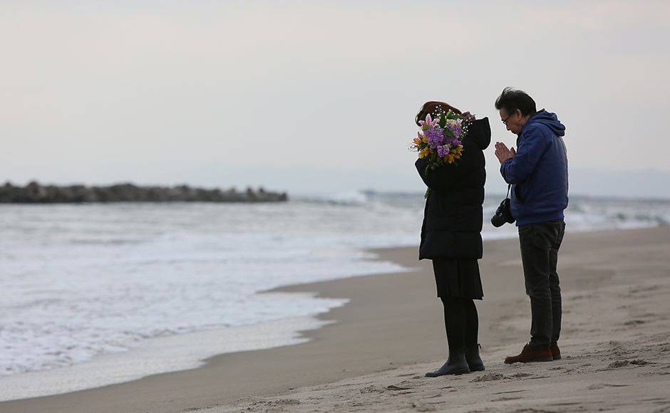 People offer prayers at Fukanuma beach on Friday in Sendai, Japan. Today Japan marked the fifth anniversary of the 2011 tsunami that killed more than 18,000 people and the subsequent damage to the reactors at TEPCO’s Fukushima Daiichi Nuclear Power Plant. Getty Images