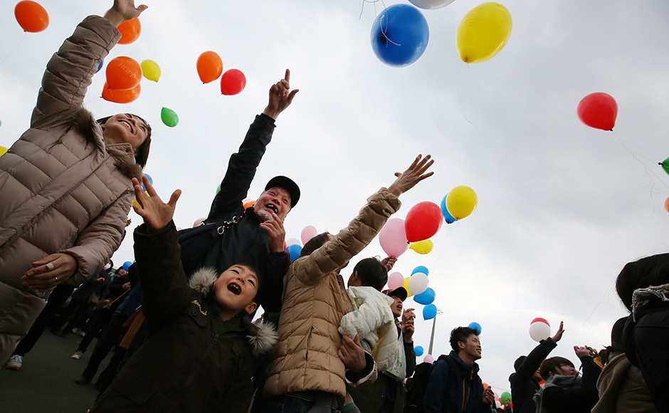 People release balloons to commemorate the victims during a ceremony at former Arahama Elementary School in Sendai, Japan on Friday. Getty Images