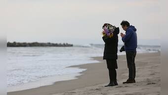People offer prayers at Fukanuma beach on Friday in Sendai, Japan. Today Japan marked the fifth anniversary of the 2011 tsunami that killed more than 18,000 people and the subsequent damage to the reactors at TEPCO's Fukushima Daiichi Nuclear Power Plant. Getty Images