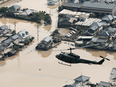 Helicopter over the flooded town of Mabi, Japan. Reuters[/caption] “We cannot take baths, the toilet doesn’t work and our food stockpile is running low,” said Yumeko Matsui, whose home in the city of Mihara has been without water since Saturday. “Bottled water and bottled tea are all gone from convenience stores and other shops,” the 23-year-old nursery school worker said at an emergency water supply station. About 12,700 customers had no electricity on Monday, power companies said. Tens of thousands had no water, Japanese media said. The death toll from the rains reached at least 94 after floodwaters forced several million people from their homes, NHK national television said, the highest toll since 98 people were killed in a typhoon in 2004. Another 58 were missing, NHK added. Industry operations have also been hit, with Mazda Motor Corp saying it was forced to close its head office in Hiroshima on Monday. The automaker, which suspended operations at several plants because of the rains last week, said the halt would continue at two plants until Tuesday, as it cannot receive components, though both were undamaged. Refineries and oil terminals were not affected, but blocked roads limited access to one Showa Shell oil terminal in the city, causing gas and diesel shortages nearby. At one landslide in Hiroshima, shattered piles of lumber marked the sites of former homes, television images showed. Others had been tossed upside down. “Nobody’s heard from my next door neighbor,” one man told NHK. “I hope they find him soon.” Water still swirled through most of the hard-hit city of Kurashiki, despite ebbing floods that opened the route to a hospital where nearly 100 patients and staff had been stranded on Sunday. Thousands flocked to evacuation centers in the city’s district of Mabi. “Nobody has anything to wear. We need shirts, trousers, underwear, socks and even shoes,” its mayor, Kaori Ito, told the Asahi Shimbun newspaper. Although evacuation orders were scaled back from the weekend, nearly 2 million people still face orders or advice to keep away from homes, fire and disaster officials said. An emergency management center has been set up at the prime minister’s office, with about 54,000 rescuers, drawn from the military, police and fire departments, fanning out across the west and southwest. Japan monitors weather conditions and issues warnings early, but its dense population means every bit of usable land is built on in the mostly mountainous nation, leaving it prone to disasters.