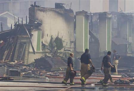 The department said 13 firefighters were transported from the afternoon blaze with various injuries including heat exhaustion. They have not identified the injured firefighters.