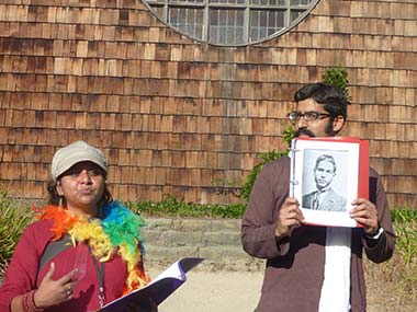 South Asian Radical History Walking Tour of Berkeley. It seems an odd choice of words. The woman with the hand-lettered sign saying Long Live Revolution in English and Bengali, waiting patiently for the car pool to carry her to the big protest hardly seems the poster girl of radical activism. “We don’t really have stories of bomb throwing anarchists,” admits Chatterjee with a smile. “But we do have stories about the Ghadar-ites who used to hang out with anarchists 100 years ago.” Bu the Ghadar party isn’t the only thing radical about the stories that dot the 2-mile walk. Chatterjee says “radical” sounds like a “big and scary” word. But feminists organising against domestic violence within the South Asian community – that can be pretty radical. Now same-sex marriage is all over the news, but, says Chatterjee, “we tell the story of a gay culturally (Bangladeshi) Muslim mixed wedding in Berkeley in 1992 and that was pretty radical at that time.” Or the story of community activists taking on one of their own – Berkeley’s biggest landlord Lakireddy Bali Reddy when he was arrested for trafficking in poor people from his village in Andhra under the guise of computer engineers to work as underpaid labour in his businesses. Some were sexually exploited as well. “Friends of my parents would say he gives employment to all these poor people from India,” remembers Chatterjee. “The Reddys threw their money around, gave to the local temple. People were not ready to call them out.” The walk upends not just conventional notions of what’s radical, but also what is considered worthy of the status of history. It pauses in front of the Pacific Center, the Bay Area’s oldest LGBT centre to tell the story of Trikone, the world’s oldest LGBT South Asian group and one of its first members, Tinku Ishtiaq, the MIT-trained engineer whose wedding to his boyfriend was splashed all over newspapers in Bangladesh, outing him against his will. And then the group meanders down the streets of downtown Berkeley into the university campus to remember Kartar Singh Sarabha who came to California in 1912, studied chemistry at Berkeley and tried to overthrow the British Empire through the Ghadar party. Hours before being taken to the gallows, Sarabha wrote his last poem. Chatterjee reads it out – “Indian I am. 100 percent Indian. Indian is my blood and my caste. This is my only religion and my only tribe.” [caption id=“attachment_1035885” align=“alignleft” width=“380”]