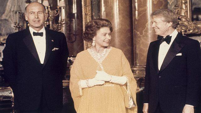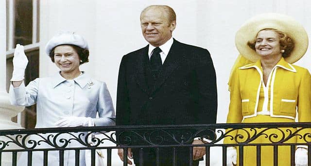 File image dated May 1977, US President Jimmy Carter (right) and Queen Elizabeth II stand with French President Valery Giscard d’Estaing, at Buckingham Palace in London. AP[/caption] Ever the Southern gentleman, Carter broke away, took her by the hand and escorted her to the assembled line of guests. The no-frills Georgia peanut farmer-turned-president ate chicken mousse off a gold plate and seemed excited by his dinner seating between the Queen and her sister, Princess Margaret, and across from her son, Prince Charles, Prince Philip and the Queen’s mother. Gerald Ford Ford threw a gala state dinner for the Brits in 1976 to mark the bicentennial of the American Revolution. The Queen was resplendent in a diamond-studded tiara that sparkled for a crowd that included diplomats, star athletes and celebrities such as Cary Grant and Julie Harris. [caption id=“attachment_11219911” align=“alignnone” width=“640”]