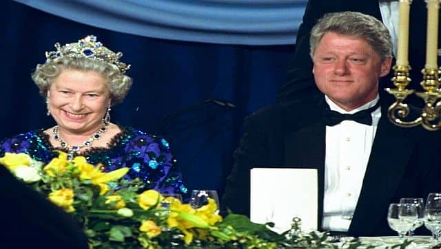 File image of President George W Bush, and First Lady Laura Bush with Britain’s Queen Elizabeth II. AP[/caption] A few years later, Bush’s slip of the tongue generated ripples of laughter at a White House welcoming ceremony for the Queen, who was touring the US in May 2007. Stumbling on a line in his speech, Bush said the Queen had dined with several of his predecessors and had helped the United States “celebrate its bicentennial in 17- …” Bush caught himself and corrected the date to 1976, and paused to see if she had taken offence. “She gave me a look that only a mother could give a child,” Bush said with a smile. The Queen later turned the tables on Bush with her toast at a dinner she hosted for the president at the British Embassy in Washington. “I wondered whether I should start this toast by saying, ‘When I was here in 1776,’” she said to laughter. Bill Clinton The Queen hosted Clinton and his wife, Hillary, aboard her royal yacht, Britannia, in June 1994. The ship, 412 feet (125 metres) long and 55 feet (17 metres) wide, was docked at the Portsmouth Naval Base and was home base for the Clintons as they attended the Queen’s dinner at Guildhall for leaders of Allied nations whose troops participated in the D-Day invasion of Normandy 50 years earlier. [caption id=“attachment_11219761” align=“alignnone” width=“640”]