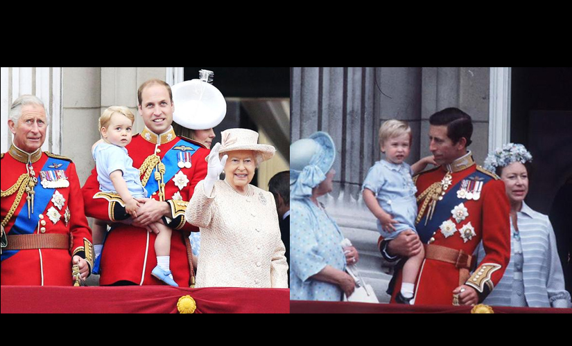 Britain’s royal toddler Prince George is already a metaphor for cuteness. Last week the 22-month old charmed the internet with his endearing photographs with little sister Princess Charlotte . This week he took his adorable quotient a notch higher when he made his first appearance on the Buckingham Palace balcony during the Queen’s official birthday celebrations.  The little prince was along side the entire royal family minus his sister as they watched the annual parade in honour of the Queen. Prince George, who is known for his stylish outfits thanks to his fashionista mother Kate Middleton, wore a powder-blue romper suit. He was carried by his father Prince William who was dressed in his full military regalia.  But what makes the appearance even more special was the fact that Prince George was wearing the same outfit that his father Prince William wore more than thirty years back at the same place for the same event.  Yes, the young prince was adorned in a 31-year old vintage outfit belonging to his father. Kensington Palace posted a image showing father-and-son three decades apart on Twitter where Prince William was carried by Prince Charles, just as he was carrying Prince George.