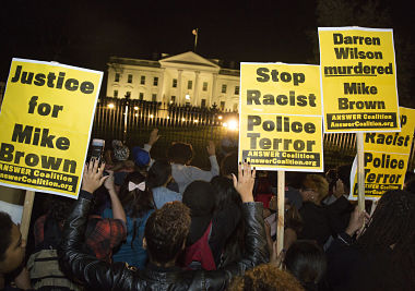 Thousands of people rallied late on Monday in US cities including Los Angeles and New York to passionately but peacefully protest a grand jury’s decision not to indict a white police officer who killed an unarmed black 18-year-old in Ferguson, Missouri. They led marches, waved signs and shouted chants of “Hands Up! Don’t Shoot,” the slogan that has become a rallying cry in protests over police killings across the country. Activists had been planning to protest even before the nighttime announcement that Officer Darren Wilson will not be charged in the shooting death of Michael Brown. [caption id=“attachment_1820397” align=“alignleft” width=“380” class=" “]