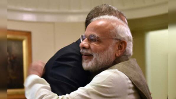 Howdy friend! US President Barack Obama welcomes Prime Minister Narendra Modi with a warm hug. Image courtesy MEA