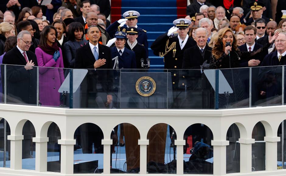 Beyonce sang the US national anthem to conclude President Barack Obama’s inauguration ceremony as he began his second term in office. Here are the images.