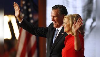 Republican presidential nominee Mitt Romney and his wife Ann wave to delegates following her speech at the Republican National Convention. Lynne Sladky/AP