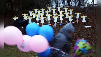 Twenty seven wooden angles stand in a yard down the street from the Sandy Hook School 16 December, 2012 in Newtown, Connecticut. Twenty-six people were shot dead, including twenty children, after a gunman identified as Adam Lanza opened fire at Sandy Hook Elementary School. Lanza also reportedly had committed suicide at the scene. Adam shot his mother Nancy Lanza,at their home before he proceeded to attack the school.Spencer Platt/Getty Images