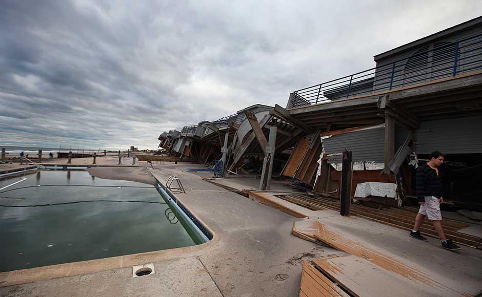A man inspects a beach club destroyed by Hurricane Sandy in Sea Bright, New Jersey. Lucas Jackson/ Reuters