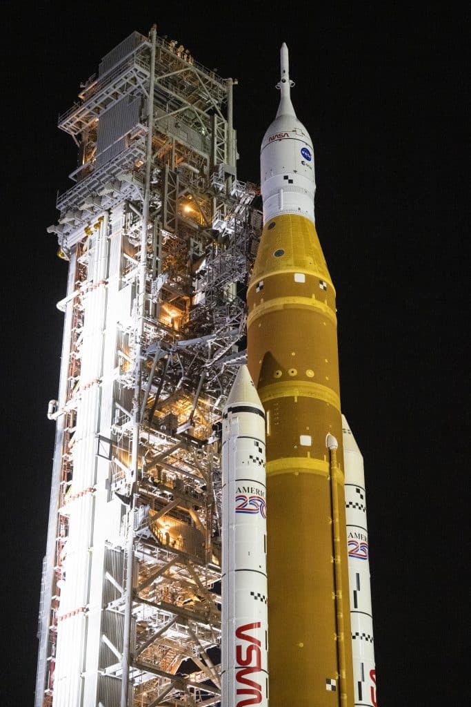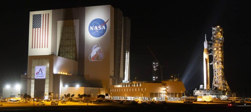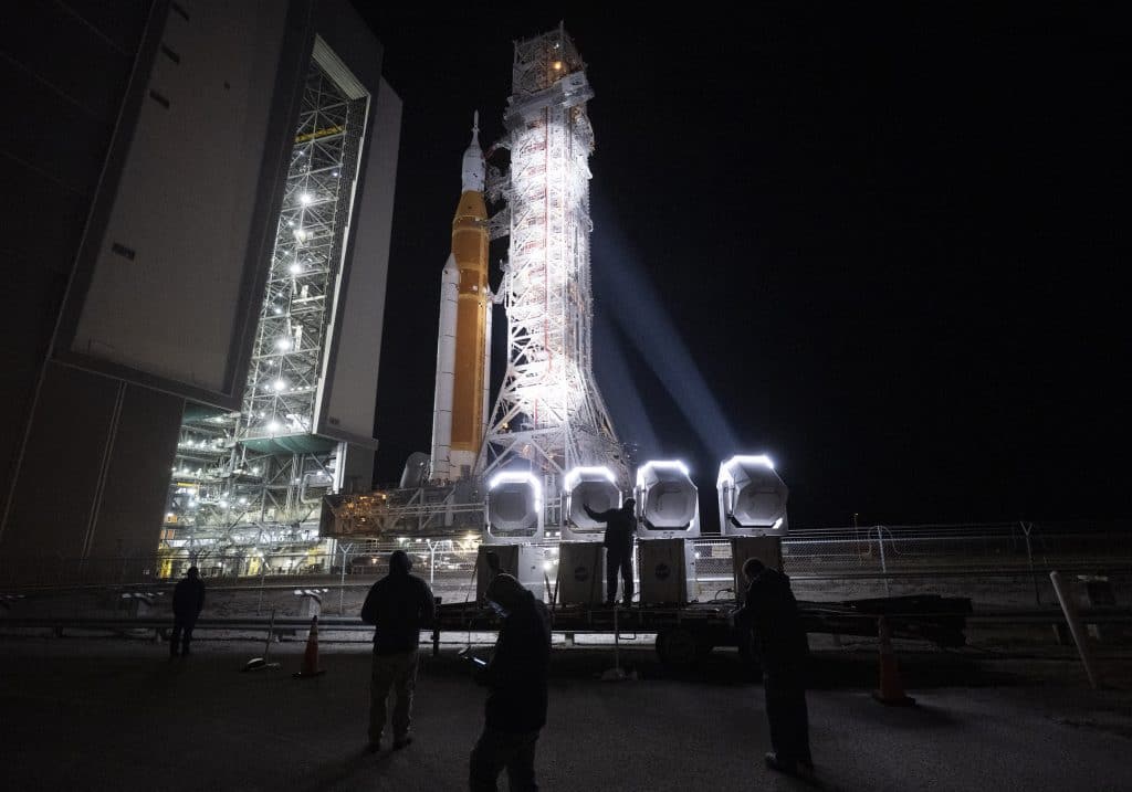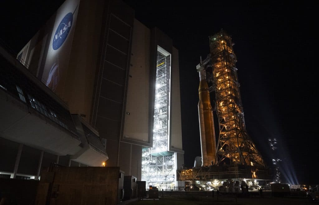 The mobile launcher platform, a steel behemoth in its own right, carries the orange core stage and twin boosters out into the humid Florida night. Every inch of movement is tracked by sensors to protect the delicate Orion spacecraft perched nearly 322 feet above the ground. This departure from the assembly bay signifies the transition from the construction phase to active launch preparations for the crewed lunar flyby.