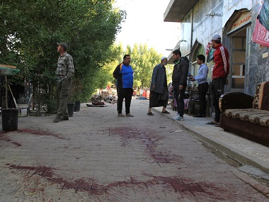 Blood stains are seen on the ground after suicide bomber blew himself up near a Shiite mosque in the Obeidi area of Baghdad. AFP [/caption] IS claimed the attack in a statement posted online, saying a bomber identified as Abu Salem carried it out with an explosives-rigged belt. IS considers Shiites to be heretics, and frequently targets them with bombings in crowded areas of the capital. IS overran large areas north and west of Baghdad last year, and while Iraqi forces have retaken significant territory north of the capital, much of the country’s west remains under jihadist control. Bombings in Baghdad have become less frequent since the IS offensive last year, apparently because the jihadists have been occupied with fighting elsewhere. AFP
