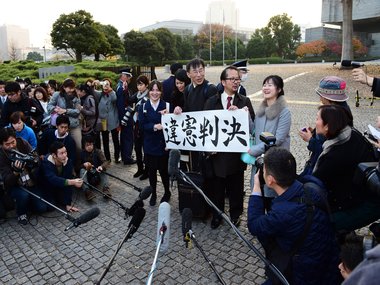 The top court’s Grand Bench – its highest ruling body – said the law did not violate the constitution, broadcaster NHK and other Japanese media reported. [caption id=“attachment_2547666” align=“alignleft” width=“380”]  Lawyers and their supporters hold a banner which says “unconstitutionality judgement” outside of Japan’s Supreme Court in Tokyo. AFP[/caption] The ruling is likely to satisfy conservatives who call it essential to maintaining the country’s family structure. In a separate decision the court decided that another law, dating from the same period and requiring divorced women to wait six months before remarrying, was in violation of the constitution. But judges stopped short of abolishing the waiting period, saying only that a ban lasting more than 100 days was unconstitutional – a ruling which suggested that a shorter period was acceptable. The surname rule is a throwback to Japan’s feudal family system, in which all women and children came under the control of the male head of the household. That family system was abolished in 1948 as part of broad reforms pushed by the post-World War II US occupation, but Japan’s civil code maintained the surname provision. “It does not violate the constitution,” NHK quoted presiding justice Itsuro Terada as saying. Terada noted that some people believe that changing one’s surname “can harm individual identity”, but added that the informal use of maiden names had eased the impact. “Use of separate spousal names should be discussed by the legislature,” he added, suggesting that parliamentarians could pass new legislation. About 96 percent of women in Japan take their husband’s surname. The half-year remarriage ban, which also remained in the civil code, is linked to complex rules about the timing of a child’s birth after divorce. In an era before DNA testing these were intended to determine whether a child belonged to the ex-husband or the new spouse’s family. Activists say the laws are a continued reflection of the country’s male-dominated society more than a century after they came into effect, and lag behind changes in other advanced countries. Conservatives have argued that overhauling the current system would shake the foundation of traditional families. AFP
