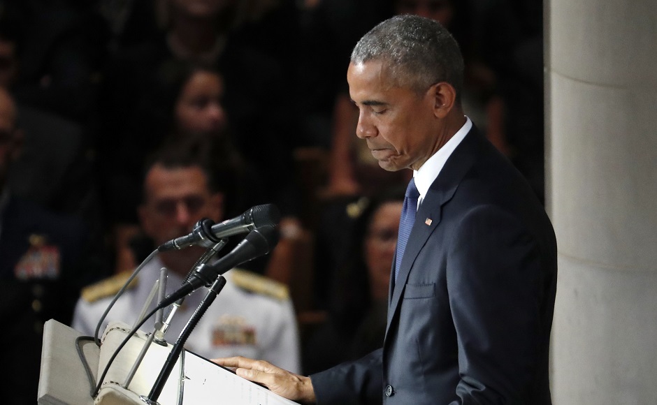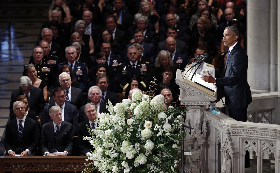 John McCain memorial: Barack Obama, George W Bush eulogise late Senator in Washington; Donald Trump absent from service