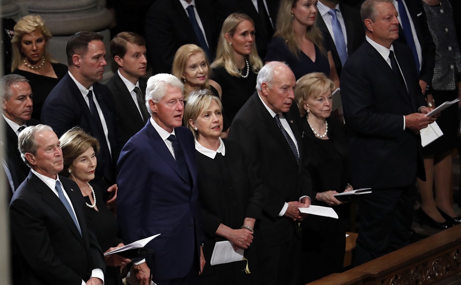 Former US presidents, including Barack Obama, and John McCain’s family members gathered on Saturday at the Washington National Cathedral to honour and remember the late senator. Meanwhile, President Donald Trump stuck to his Saturday routine and headed to a golf course. He did not offer any commentary on McCain’s memorial service. AP