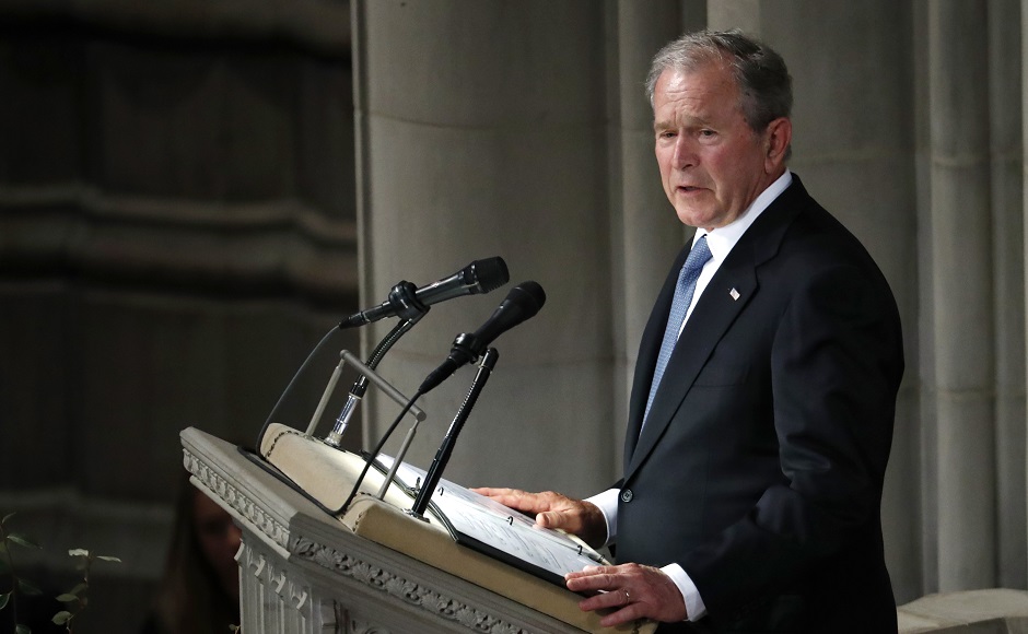 Former president George W Bush described McCain as a man with a code in his eulogy. He recalled a champion for the ‘forgotten people’ at home and abroad whose legacy will serve as a reminder of the power of America. AP