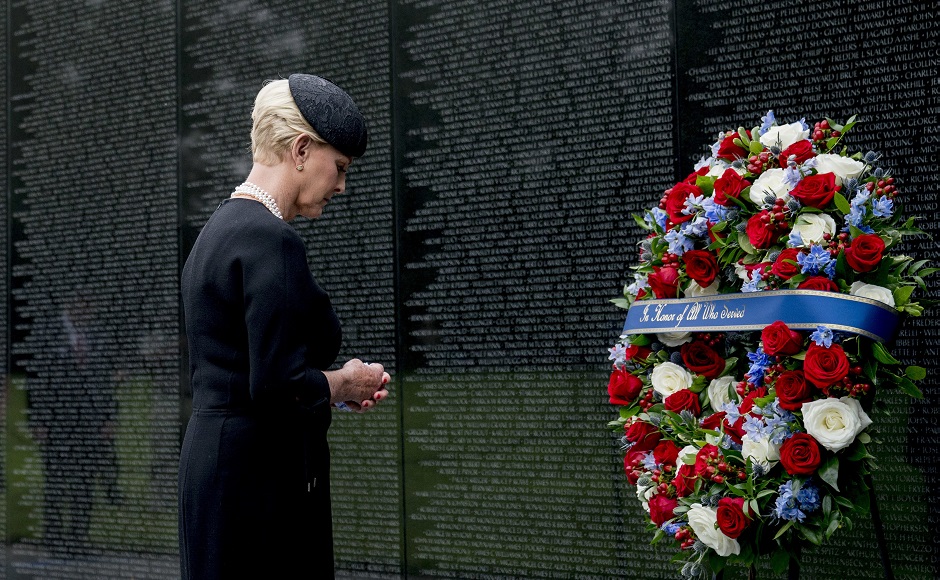 McCain’s wife, Cindy, laid a wreath to honour those who died in the war at the Vietnam Veterans Memorial. AP