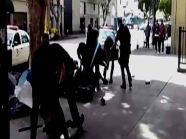 Los Angeles: In a fatal encounter captured on video, three Los Angeles police officers shot and killed a man during a struggle over one of the officers’ guns, authorities said. The graphic video widely circulated on social media within a few hours of the incident Sunday brought attention to the death of the man who wound up wrestling with police amid the tents, sleeping bags and trash of Skid Row, where many of the city’s homeless stay. Other recent deaths during police actions in New York and in Ferguson, Missouri, and the lack of prosecution of the officers involved, have brought nationwide protest. The three officers, one of whom is a sergeant, shot the man as they struggled on the ground for control of one of the police officer’s weapons, after a stun gun proved ineffective, LAPD Cmdr. Andrew Smith said. The officers had been responding to a report of a robbery. [caption id=“attachment_2131537” align=“alignleft” width=“380”]