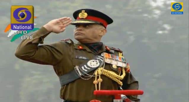 10.16 am: R-day parade begins, Lt Gen. Subroto Mitra leads first formation The Republic Day parade has now begun in full earnest.  Lt Gen. Subroto Mitra led the first formation, followed by past winners of the Ashok Chakra.