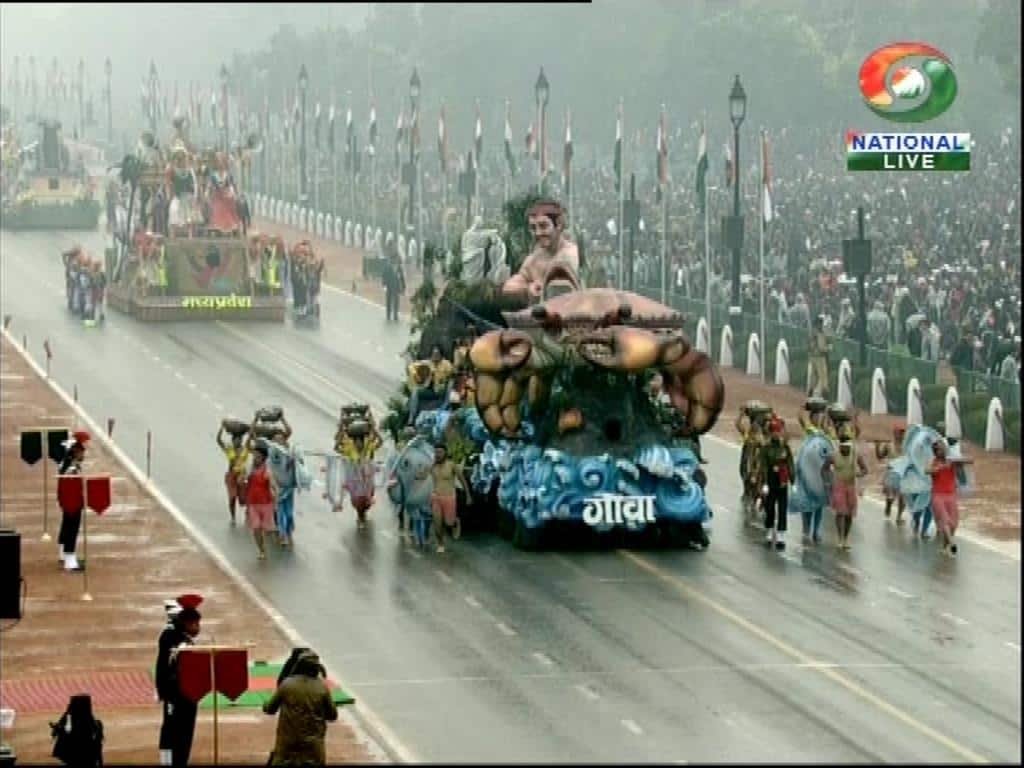 10.55 am: Andhra Pradesh tableau begins procession of states Some state pride on display now. Andhra Pradesh farmers are followed by a huge crab from Goa and some folk dance from Madhya Pradesh. [caption id=“attachment_2064235” align=“alignnone” width=“820”] ![Goa-full](https://images.firstpost.com/wp-content/uploads/2015/01/Goa-full.jpg) The Goan float, starring that crab[/caption] Uma Bharati was shown standing and applauding the MP float. The Assam float features its natural beauty, compete with a ’tourist’ taking a picture and mouthing the word ‘wow’, as does strangely, Jharkhand. Is this some sort of elaborate hint to Obama, or are they cleverly taking advantage of global attention on the parade? Andhra Pradesh and Telangana have got their own separate floats, while Gujarat’s float features Modi’s pet ‘statue of unity’ project. 10.49 pm: India shows off military might as Obama bops to marching bands India is pulling out all the stops to show off its military might, in front of chief guest, Barack Obama. Obama looks suitably impressed, and was shown in the latest tv visual, bopping his head to the beats of the military bands. This is a wonderful opportunity for India to showcase its capabilities to the rest of the world, thanks to the presence of the US President who has ensured that this years celebrations will be watched by the entire globe.