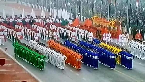 11.47 am: BSF motorcycle stuntmen get thumbs up from Obama Alright, the BSF just won the Republic Day parade with its motorcycle stunts. We have seen some pretty unbelievable formations, including one peacock, and some insanely good parallel formations. Michelle and Barack Obama look the most impressed they have, all day, and we don’t blame them. Obama just gave them a thumbs up. That is the preclude for the flypast, which mercifully has not been cancelled after all. Unfortunately however, the fog means that the view of the planes - led by the Hercules military planes purchased from the US - is sadly limited. But hey, something is better than nothing. 11.37 am: Mangalyaan dance and Swachh Bharat dances featured at parade ‘Mangalyaan Mangalyaan apna Mangalyaan’ opens a dance dedicated to the Mars orbiter Mission, performed by 170 students from a Delhi public school. [caption id=“attachment_2064305” align=“alignnone” width=“599”] ![The Mangalyaan dance](https://images.firstpost.com/wp-content/uploads/2015/01/mangalyaan.jpg) The Mangalyaan dance[/caption] Featuring a pyramid of metallic silver clad students and some dancers in various colours, the song and dance is a tribute to India’s future and what can be achieved by its future generations. The Mangalyaan dance was preceded by a dance dedicated to Swachh Bharat. 11.30 am: ‘Daang’ dance by Junabi-Konkana tribe from South Gujarat delights US contingent The Junabi-Konkana tribe from South Gujarat is performing the Daang dance to the delight of the crowd. The dance is usually performed by the tribe on Holi. The visiting US contingent has burst into applause. 11.24 am: State floats over, govt department tableaux on display The ‘Make in India’ and ‘Beti bachao, beti padhao’ floats are among those featured in the government tableaux, which are expected to showcase some of PM Modi’s pet projects. The ‘Make in India’ float was particularly impressive, featuring a lion made out of cogs and clockwork with some funky electro-style dubstep music.