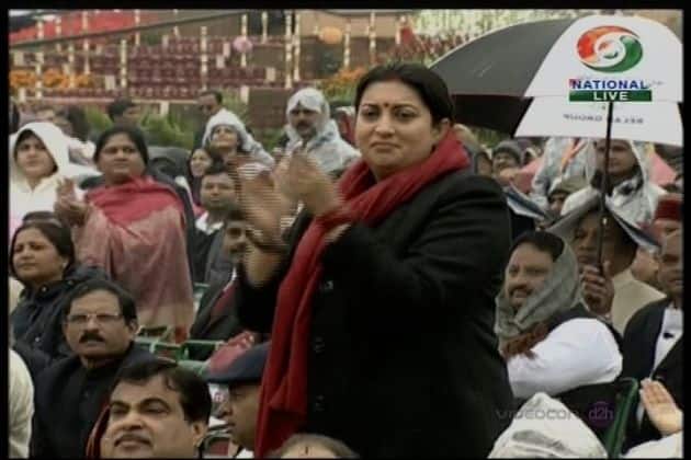 10.26 am: First ever women’s contingent to march at R-day parade  The first ever woman’s contingent to march at the Republic day parade, led by Captain Divya now marches past the saluting station. The contingent gets a standing ovation from HRD Minister Smriti Irani, and PM Modi is seen leaning over to Obama, to explain to him the significance of this moment.