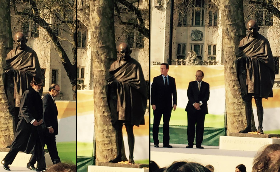 A galaxy of political leaders led by British Prime Minister David Cameron and Finance Minister Arun Jaitley were joined by Bollywood legend Amitabh Bachchan and the Mahatma Gandhi’s grandson Gopalkrishna Gandhi at the ceremony to unveil the 9-foot statue of India’s Father of the Nation. Gandhi is the first Indian and the only person never to have been in a public office to be honoured with a statue at the Square. Official FB page of India in UK (High Commission of India, London)