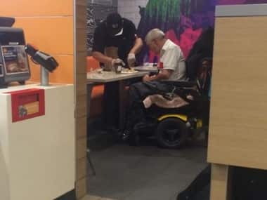 A Chicago McDonald employee, is being praised on social media after his picture of helping a disabled man eat went viral. [caption id=“attachment_2445800” align=“alignleft” width=“380”]  Source: Destiny Carreno Facebook[/caption] Destiny Carreno was waiting in a line at the McDonald when an old man came in on a wheelchair. The man, with difficulty, asked the employee behind the counter, known only as ‘Kenny’, for help not with his order, but eating his food. ‘Kenny’ immediately closed his his register and disappeared into the kitchen, only to return after washing his hands and putting on gloves. “At that point, the tears started to gather in my eyes. My heart was so appreciative for what he did. I couldn’t contain my emotions in the crowded restaurant. This employee, who put everything on hold for this man, went above and beyond his responsibilities to help this handicapped customer out. That was the kindest and most humble thing I had ever seen,” writes Carreno. Her post on Facebook has been shared 3,40,000 times so far. Rod Lubeznik, the owner of the McDonald’s franchise where the exchange took place. In a statement to NBC-Chicago, he said the company was “overwhelmed by the positive response [Kenny] has received for his compassion and kindness.” “It’s a true testament to who Kenny is, and a reminder to us all that one seemingly small act of kindness can touch the hearts of so many,” the statement read, reports Today. Lubeznik said the restaurant planned to recognize Kenny during an upcoming rewards presentation. Here is the original Facebook post from Carreno: