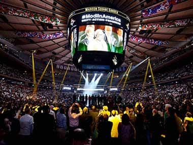 by Aseem Shukla As I sat in the rafters looking out over Madison Square Garden as Prime Minister Narendra Modi began his speech–with a jumbotron flashing and a frenzied audience leading cheers–I thought back to the pageantry of the 1974 bout between Muhammad Ali and Joe Frazier at the same iconic venue. The New York Times used to place iron-on inserts in its Sunday edition and my father had cut the insert down the middle imprinting Ali on my t-shirt, and Frazier for my brother, as we mock-boxed while dancing around the living room. So it was a surreal deja-vu seeing the same venue, seemingly the same jumbotron, but this time with thousands of t-shirts bearing a likeness of Modi emblazoned with a stylized, Obama-esque pop print with “Unity, Action, Progress” transposed below the hashtag #ModiinAmerica. There was pomp and pageantry, of course, and there were double-takes for people-watchers around. Hindu swamis sat next to imams and Zoroastrian priests, and Muslim families bedecked in flowing white garbs sat cheek to jowl with Hindus with Vaishnav tilaks on their foreheads. There was Swami Chidananda Saraswati of Parmarth Niketan and Swami Siddhananda of Chinmaya Mission, and there sat Sushma Swaraj. Nina Davuluri, Miss America took the stage, and Priety Zinta was seated to add a dash of glamour. [caption id=“attachment_1737317” align=“alignleft” width=“380”]  Modi can pull off an extemporaneous English speech quite easily–albeit in an unmistakable avuncular Gujarati accent.[/caption] No one could miss, of course, that Nikki Randhawa Haley, the Governor of South Carolina, four Senators and twenty-nine members of the House of Representatives, including the chair and ranking member of the influential House Foreign Affairs Committee, sat arrayed in the first row, following personal meetings with Modi. It was also lost on no one present that this extraordinary show of American political leadership just weeks before mid-term elections underscored an arrival in many more ways than just landing on the tarmac. This was not just Modi’s arrival to America. All of this heralded a new symbolism in U.S.-India relations may be the official trope, but as Peter Cook said on Bloomberg, Modi’s popularity is simply so overwhelming in the U.S., that politicians running for office could credibly hope to tap into the reflected glow of a politician at his apex. When I assumed a small volunteer role for the event just about a month ago, I thought the plans sounded like a circus in the making. There was less cohesion and many leaders and many plans. But as dawn broke on September 28, the only nod to a circus was the rotating stage that the Main Event’s pugilist occupied with no teleprompter, no props, to own the Garden with words alone. And, as always, his words. As he showed during his “may the force be with you” benediction to Hugh Jackman in a seven-minute address to a hip Central Park crowd, Modi can pull off an extemporaneous English speech quite easily–albeit in an unmistakable avuncular Gujarati accent. But Modi’s privileging of Hindi created a crisis in the external affairs ministry, and the near lyrical complexity of his Hindi style is a professional challenge that our Indian American interpreter Gurdeep Chawla took on with a mix of trepidation and confidence. I spent most of the day in the press bridge with a brigade of volunteers, and smiled as sometimes it seemed that more people were snapping cell phone shots of Arnab Goswami or Barkha Dutt than the prominent Indian Americans they were interviewing. It was an impossibly paradoxical task right from the beginning: raise at least $1.5 million in a month to pull off a reception at a prominent location, but keep tickets free. Bharat Barai, the teflon-coated organizer-in-chief, marshalled his rolodex and raised the needed money absorbing loads of barbs and bouquets on his way to the forum. He will look back today and see that it was difficult, but it was done; and it was good. But perhaps the real story in organization was in the accents heard in the background. A second look, and one saw that likely the largest community reception ever organized for a foreign leader in the United States came on the back of a team of many second generation Indian Americans born or raised in the country. These were twenty and thirty-something Washington insiders, public relations professionals, doctors and lawyers working nights after their day jobs. A New Jersey basement was immortalized as the “war room” with charts on walls, special printers humming all night and dozens of laptops sprawled across the room. And somehow, impossibly, a task was completed in a short month. This is not to say that lessons were not learned. Security logjams and a staff bottleneck caused the most frustrating delays for the separate entry set aside for many of the who’s who were accorded special invitee status, and a classless verbal ambush of Rajdeep Sardesai outside of the venue followed by some pushing and shoving made for a side story that most only heard about hours after the program. There was another commotion too, we were later told, as a gaggle of protesters neatly contained behind barriers were reduced to the bizarre position of condemning each other. The newest version of the internet portal Coalition Against Genocide sent out a press release distinguishing itself as only anti-Modi, as opposed to a pro-Khalistan rally that also claimed to be anti-Modi even as it irrationally condemned Modi for alleged crimes in 1984 Punjab. But the party played on, and from Madison Square Garden it moved on to Fifth Avenue and to the Pierre, a Taj Hotel property just a block from the historic Plaza Hotel. Ambassador S. Jaishankar hosted an affair that would have been adjudged swanky with Mukesh Ambani, Gautam Adani, Indra Nooyi, Vivek Ranadive, Ajay Banga, and senior Members of the U.S. Congress in attendance. But to the Ambassador’s lasting credit, room was 