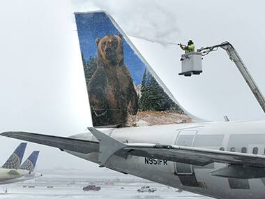 New York: Cities from Boston to New York and Philadelphia began shutting down on Monday against a monster storm that could unload up to 3 feet (90 centimeters) of snow on a region of more than 35 million people. Snow was blowing sideways with ever-increasing intensity in New York City by midafternoon as flurries began in Boston. Forecasters said the storm would build into a blizzard, and the brunt of it would hit on Monday evening and into Tuesday. [caption id=“attachment_2065711” align=“alignleft” width=“380”]  A crewmember de-ices a Frontier Airlines plane at LaGuardia Airport in New York. AP[/caption] More than 6,700 flights in and out of the Northeast were cancelled, and many of them may not take off again until Wednesday. Schools and businesses let out early. State government offices closed. Cities mobilized snowplows and salt spreaders to deal with a dangerously windy blast that could instantly make up for what has been a largely snow-free winter in the urban Northeast. All too aware that big snowstorms can make or break politicians, governors and mayors moved quickly to declare emergencies and order the shutdown of highways, streets and mass transit systems — perhaps for days — to prevent travelers from getting stranded and to enable plows and emergency vehicles to get through. New York City’s subways and buses planned to shut down completely by 11 p.m., Commuter railroads across the Northeast also announced plans to stop running overnight. Most flights were canceled out of the region’s major airports. “This will most likely be one of the largest blizzards in the history of New York City,” New York Mayor Bill de Blasio warned. He urged New Yorkers to go home and stay there. The National Weather Service issued a blizzard warning for a 250-mile (402-kilometer) swath of the region, meaning heavy, blowing snow and potential whiteout conditions. About half of all flights out of New York’s LaGuardia Airport were called off Monday, and about 60 percent of flights heading into the airport were scratched. Boston’s Logan Airport said there would be no flights after 7 p.m. Monday. Coastal residents braced for a powerful storm surge and the possibility of damaging flooding and beach erosion, particularly in New Jersey and on Cape Cod in Massachusetts. Officials in New Jersey shore towns warned people to move their cars off the streets and away from the water. Utility companies across the region put additional crews on standby to deal with anticipated power outages from high winds. The storm interrupted jury selection in the Boston Marathon bombing case and forced a postponement in opening statements in the murder trial of former NFL star Aaron Hernandez in Massachusetts. The Washington area was expecting only a couple of inches (a few centimeters) of snow. But the House postponed votes scheduled for Monday night because lawmakers were having difficulty flying back to the nation’s capital after the weekend. On Wall Street, the New York Stock Exchange said it will stay open and operate normally on Monday and Tuesday. Associated Press
