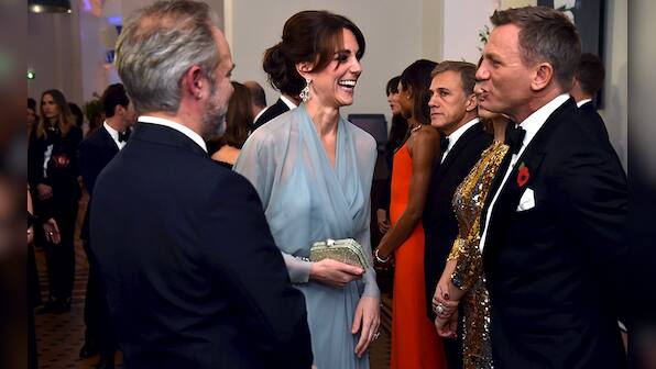 Catherine Duchess of Cambridge (C) speaks to cast member Daniel Craig (R) before the world premiere of the new James Bond 007 film “Spectre” at the Royal Albert Hall in London. Image courtesy: Reuters
