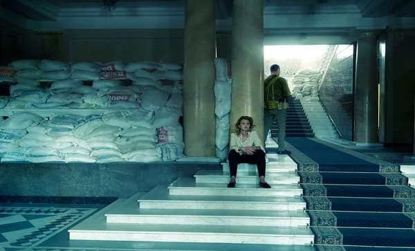 Leibovitz also took some solo shots of the First Lady against the backdrop of a broken vehicle, three Ukrainian soldiers, and on the staircase of a building padded with sanded bags used in military bunkers.